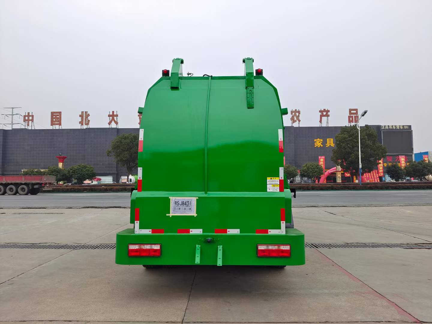 5、密閉排料(選裝):不用后門打開,液態垃圾可以通過管道路排出,固態垃圾可以通過旋轉絞籠擠壓排放出車廂。
