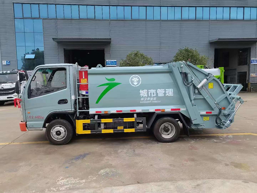 廂體有效容積4.5方,弧形箱體,采用專用鋼板制作,配套威森博樂多路閥,徐州全球通液壓油鋼管,皖液液壓油泵,填裝器舉升油缸帶液壓鎖裝置,采用PLC電控系統,帶一鍵操作和手動操作兩種模式,電控操作盒3個,分別安裝在駕駛室內及車尾部各一只,方便操作,帶污水收集箱,尾部帶厚橡膠密封壓條。