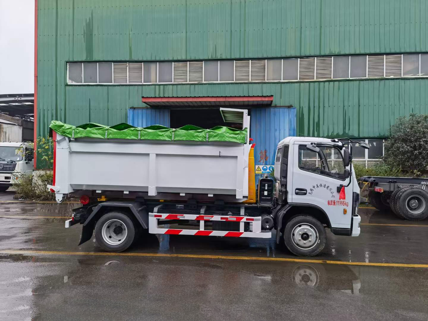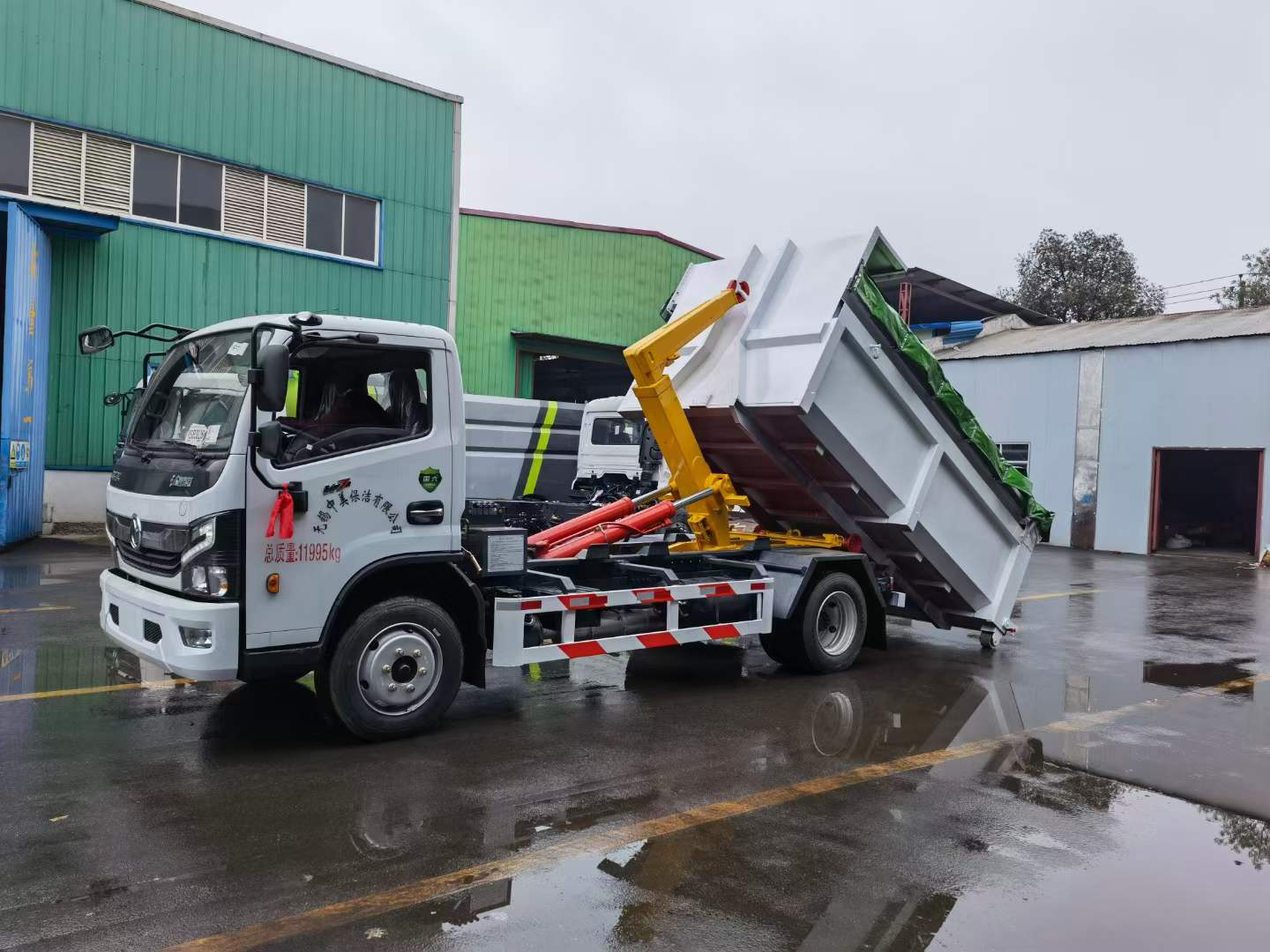 伸縮套臂:上裝部分由伸縮拉臂、主臂油缸、活動套臂、套臂油缸、附車架、翻轉架、支撐腿、鎖緊架、鎖緊油缸及多路換向閥等組成。拉臂帶伸縮功能,可以通過改變力矩和加大壓力的方式拉升更大的重量,配備垃圾斗后適合裝載建筑垃圾等重物,液壓泵為合肥皖液、多路閥、液壓鎖、平衡閥、行程閥、采用威森博樂,油缸為定制頂尖合資威森博樂品牌。